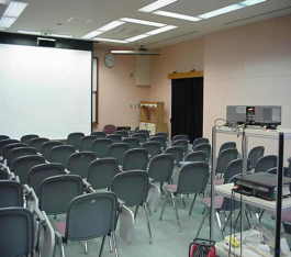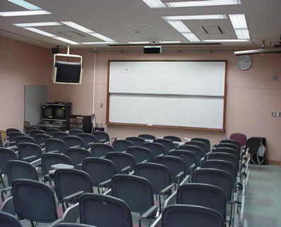 この機械は,視聴覚室の部屋の真ん中に設置してあります。 部屋のすみには,ビデオを置いてます。だから,いつでもビデオが観られます。