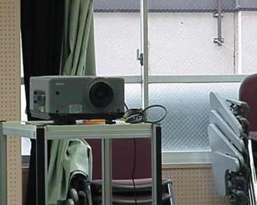 右の機械はプロジェクターといい,スクリーンに映像を映しだす機械です。