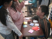 2年生の英語活動の様子です。 "A Beautiful Butterfly”という単元で行いました。絵本の読み聞かせをしてから,自分の集めたい色を友達に伝えたり友達の集めたい色を聞いたりするコミュニケーション活動を行いました。 最後に自分の作り上げた「世界にひとつだけの蝶」を紹介しあいました。 子ども達はとても楽しそうに活動していました。