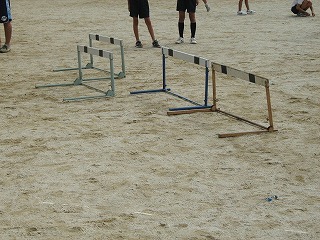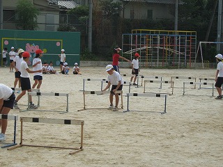 運動会に向けて,子ども達は練習を積み重ねています。 高学年ではハードル走において,各自のインターバルを決めて走っています。 自分に合うインターバルを板で表示します。係の子ども達がその表示に合わせてハードルを移動させます。 スピードを落とさないようにインターバルを確認しながら練習していました。