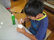 今回の活動では「すごいぞ!シャボン玉」ということでシャボン玉を作っていろいろ試してみました。 手の上にのせていろいろ操ってみました。 なかなかうまくできなかったのですが,成功したとき子ども達は満足そうにしていました。 これからもいろいろな実験にチャレンジしていきます。