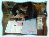 子どもたちは,シクラメンの花を花びら一枚一枚しっかり見て,懸命にスケッチしました。初めての彫刻刀にも挑戦しながら,すてきな版画を作っています。絵の具を木にのせるときも,水を多く含ませないように気をつけながら,自分の好きな色をたくさん作り出していました。
