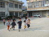 今日からマラソンが始まりました。登園してきてすぐにグランドに出て、15分間走りました。朝はとても寒かったのですが、マラソンのおかげで体が温まり、その後も元気に外で遊ぶ姿がたくさん見られました。