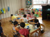 毎週、月曜日と水曜日は10:00〜11:30まで教育相談 うさぎ組をしています。うさぎ組は0歳から3歳までの未就園児さんのクラスです。手遊びをしたり、歌を歌ったり、紙芝居をしたり、読み聞かせなどをしています。たくさんのお友達が来ています。今日は、地域のボランティアの方に加えて学生ボランティアの大学生のお姉さんと一緒に、歌に合わせて楽しく遊びました。子どもたちを通して、お母さん同士の会話も弾んでいました。先輩のお母さん方や幼稚園の先生、ボランティアの先生と一杯お話ができたらと思っています。うさぎ組さんは園区外の方でも入ることができます。どうぞお越しください。
