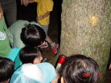 夏休みに入っても雨がよく降ります。土曜日の夜は、セミの羽化を見る、本年2回目の[親子の学びと育ちの広場]が御所でおこなわれました。この日は、雨もやみ4園の子どもたちと保護者の方など全員で200名を超える観察会となりました。子どもたちは、虫取り網と虫かご、それに懐中電灯と装備は完全でした。講師の先生も京都自然観察教室の先生方9名で4班に分かれてセミの幼虫や羽化の観察に。しかし、連日の雨にセミも昨年より少なく、歩いているのは結構見られたのですが、羽化が見えたのは1つでした。もう少し時刻が遅くなれば幼虫が出てくるのですが。 また、ご家族で観察に行っていただければと思います。