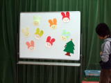 そして,今日は12月生まれの誕生日会もありました。8匹のうさぎさんに帽子をクリスマスプレゼント。似合う帽子をみんなで考え,楽しみました。