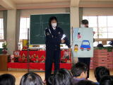 今日は交通安全教室がありました。五条署から来ていただき,道の歩き方や横断歩道の渡り方など丁寧に教えていただきました。年長組は4月から小学校に通うので,実際に幼稚園の周りを親子で歩きました。