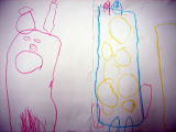 ゆり組さんもばら組さんも、昨日の大文字山に園外保育に行ったことを絵に描きました。大文字山に行ったことを思い出し、自分の言葉で話しながら描きました。歩いて登ってしんどかったこと、もみじの葉の色がきれいだったこと「大」のところで鬼ごっこをしたこと、道であった人に大きな声で「こんにちは」ってあいさつしたこと、家に帰ってからぐっすり寝たことなどたくさんお話ができました。