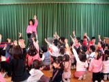 昨日、13日(日)梅小路公園で「下京区ふれ愛ひろば」が開かれました。オープニングのセレモニーに下京の保育園2園と共に開智幼稚園も招かれました。4・5歳の子ども達が出演し「バナナの森のピクニック」「元気ソーラン」「やまびこごっこ」の3曲を披露しました。大きな声で歌い、舞台の上いっぱい使った大きな動作でとっても元気にできました。