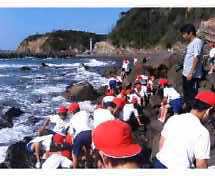 | お待ちかね☆全員そろって朝ご飯♪ | 宮崎浜にて磯観察!どんなものがみつかるかな(?_?) | 水しぶきがすごかったです(>_<) |