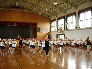 運動会に向けて美豆音頭の練習を行いました。地域の方に指導していただきました。