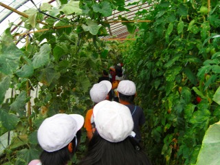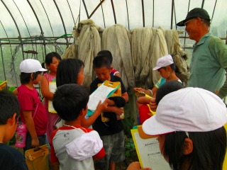グループごとに分かれて,校区探検に行きました。地域の方々に,いろいろな話を聞きました。あいにくな天気でしたが,子どもたちは熱心に活動していました。