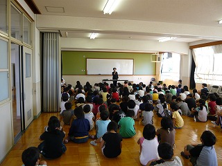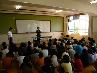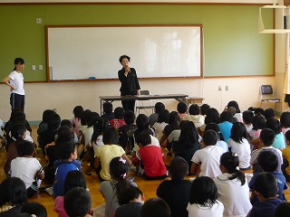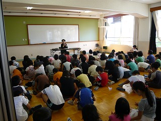 9/8に地域の方をお招きして,昔の暮らしについてお話していただきました。子どもたちは,戦争中の話に興味を持って聞いていました。