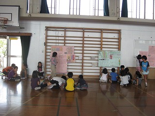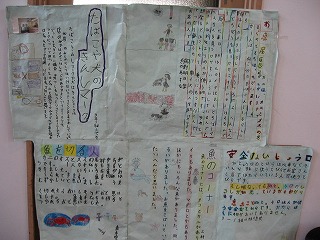 社会科の学習で,スーパーイワキの見学に行って調べたことを新聞にまとめ,2年生へ発表を行いました。