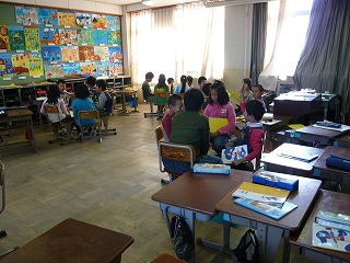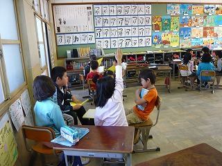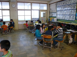 国語で,『ちいちゃんのかげおくり』の学習をしています。音読発表会に向けて,場面ごとにめあてを考えて,グループで音読発表をしています。