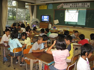 | ユンノリをした感想 『初めてやったけど,ずっとずっとしたくなるような遊びでした。これが家にあったらずっとしたいです。この遊びがかんこくの人たちが遊んでいたとは知りませんでした。』『このゲームは「◎」のところに行ったら近道できるというゲームを考えたのはすごいと思いました。』『日本のすごろくは簡単に「6」が出るけれど,ユンノリは4点・5点が出にくくて1点ばかり出るのが面白かったです。』 |