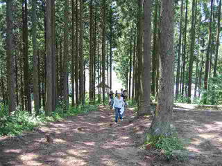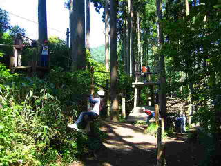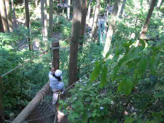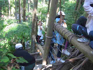 「冒険の森」で 急坂をドキドキヒヤヒヤしながら登りました。 |