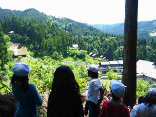 | バスを降りて,山の家に向かう坂道の途中で。 | ![]() |