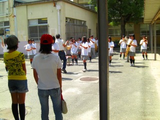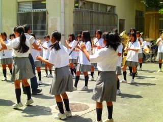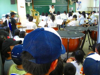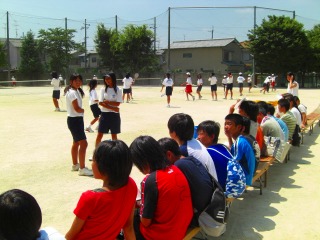 大淀中学校へ,部活見学に行ってきました。子どもたちは,興味を持って活動の様子を見ていました。