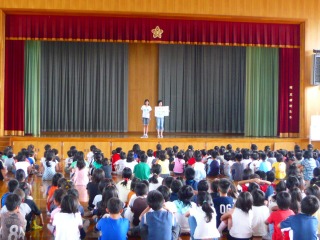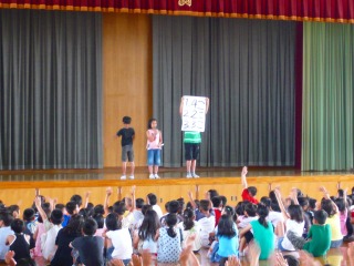 児童集会では,飼育委員会と保健・安全委員会の発表がありました。その後に,6年生のよい歯の表彰がありました。