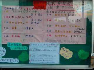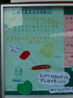 職員玄関横の掲示板に,給食委員会・掲示委員会の作成物が掲示されました。