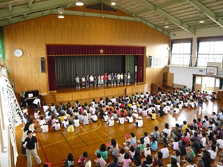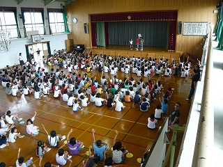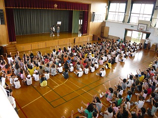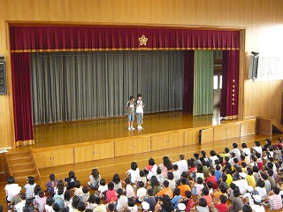 9月5日の児童集会で,園芸委員会の発表がありました。どの児童も集中して発表を聞いていました。