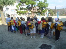 | 各分団ごとに,集団下校です。「子ども110番のいえ」を確認しながらの下 校となります。児童館へ行く子どもたちは,学生ボランティアの学生さんが 児童館まで引率してくれました。 |