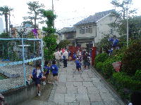 昨日,雨で順延になった御霊神社の「子どもみこし」が今日行われました。室町小学校は,途中の休憩所で,子どもたちは少しの休憩をとって,また御霊神社へ向かいました。