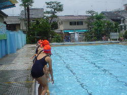 最初は静かに歩くとこらから,始まりました。今年度初めてのプール,水慣れに
