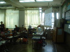 | 2年生でも,自分のノートに式や考え・図・絵などを書き込んでいきます。 室町校の研究では,ノートにどれだけ書き込めるかが大きな評価となりま す。特に研究授業では,他の教師たちの鋭い目が光ります。 書き込みが十分でない子どもたちへは,支援に回ります。 |