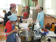 スタッフの方は,飾りつけの間, 下ごしらえをしていただいていま す。 |