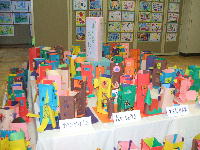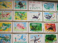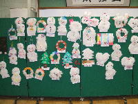 子どもたちがいっしょうけんめい取り組んだ作品が多目的室やその周辺の掲示板,廊下に並びました。