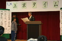 上京タイム」というのは,「上京支部の児童に,日常生活の中で感じたり思ったりしたことを発表する場をつくり,豊かな心を育てるとともに,感動の輪を広げる。」というねらいで行われ,今年で12回目を迎えます。