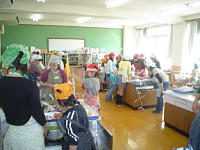 家庭科室では子どもたちが社会協議会の皆さんに手伝ってもらって