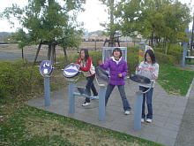 自転車をこいで発電中!! | 自分の手と握手するそうです。 でも,つかめない不思議な世界? |