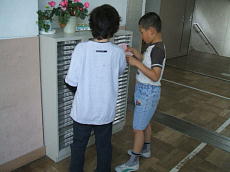 | 棚には問題用紙と解答用紙が入って います。自分の力に合った問題から 始めます。 |