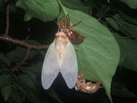 横の木では小さなニイニイゼミが 生まれていました。 |