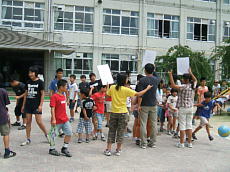 このグループは「こおりオニ」で,運 動場中,走り回っていました。オニは 6年生だそうです。 |