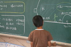 自分のメダカをもらってメダカを飼い 卵を産ませることになりました。「ど うしたら卵を産ませられるかな」そ んな意識を学習課題として板書しま す。 |