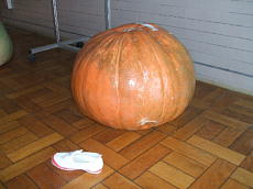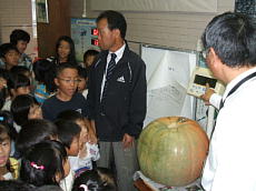 ![]() ![]() 体重計にカボチャをのせてはかりました。正解は49.5kgでした! |