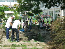 | さて,吉吉コンビによるメダカの池づ くり大作戦です。 |