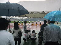 | 当日は,あいにくの天候となりました。 時折,強い雨も振りましたが,府内から参加した6年生は 雨にも負けず一生懸命がんばりました。 |