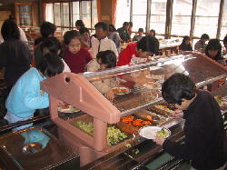 | ずいぶんお腹がすいたところでおいしい夕食。食事にはみんな大満足でした。 | |