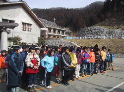 | 例年になく暖かい日になりました。バスが山の家について、いよいよ活動の始まりです。 | |