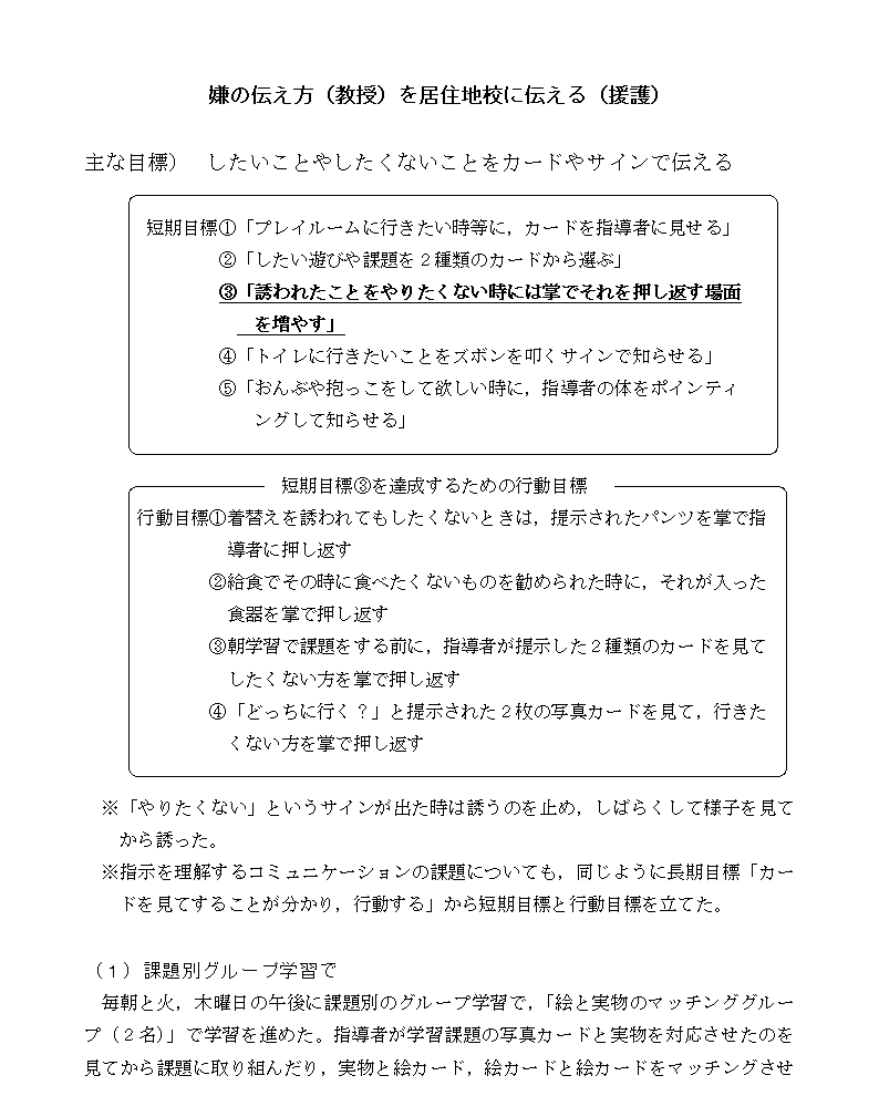嫌の伝え方(教授)を居住地校に伝える(援護)