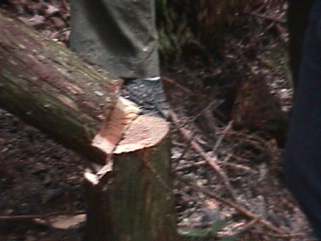 | 切る前にロープで方向を定めてから 口を開けて口よりちょっと高めのとこ ろを切っていきます | |