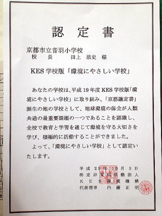 KESによる「環境にやさしい学校」評価にも,合格しました。