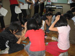 平成19年度・20年度と本校は上記の指定を受けて、英語活動を進めています。その拠点校としての公開授業を実施しました。 1. レッツ シング ア ソング 2. 伝言ゲーム 3. 英語カルタ取り 4. テキスト学習 以上のような流れで学習を行いました。