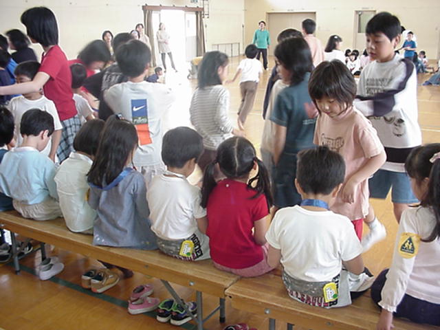 | 春の1年生を迎える会 春に1年生を迎えるにあたって, 2年生から6年生がそれぞれ縦割り にわかれて準備をします。 プレゼントやゲーム・歌などに加え 1年生に聞いたアンケートをもとに 1年生の紹介をしたり,中・高学年の先輩たちはおおはりきりです。 |