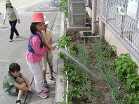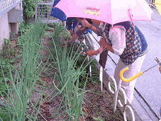 | 「季節のめぐみ」…「ネギ」を育てました。 | ネギの苗を植えて世話をしました。 | ![]() |